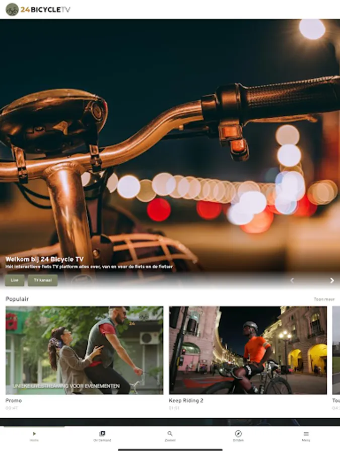 24Bicycle TV offers countless programs in which the bicycle plays the leading role. The video platform pays attention to current affairs, nutrition & fitness, tours, clinics, bicycle trips and bicycle maintenance. And with exclusive live streams, you'll always be front row seat to cycling events and tours around the world.