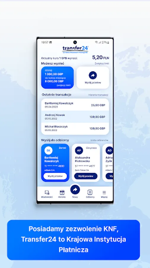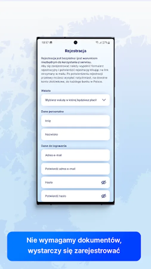 Through us, you can send a transfer to Poland from Great Britain, Eurozone countries, Norway and the USA. A transfer to a recipient in Poland in 10 minutes is our standard at no extra charge. We are authorized by the Polish Financial Supervision Authority (KNF) to operate as a National Payment Institution. We use simplified registration procedures, to send a transfer to Poland, you just need to register, registration takes only a moment and is free. Sending transfers to Poland in our system is no different than sending an ordinary bank transfer via the Internet.
