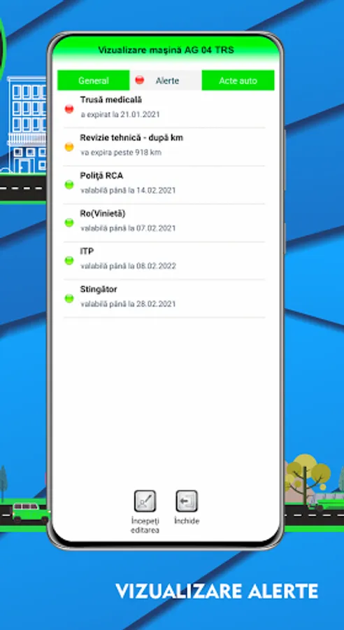 Car Alerts is the application that allows the management of over 30 possible alerts regarding the expiration of some documents of the car, regardless of its use (freight, personal car, taxi, etc.), and over 10 alerts for the expiration of personal documents management, bulletin, certificates, etc.). In addition, if you do not find a required alert, you can always create a custom one.