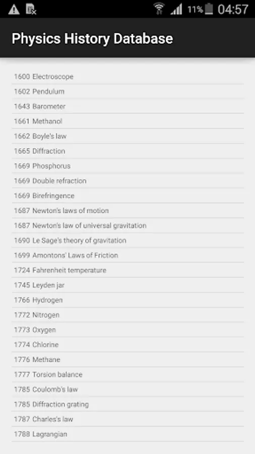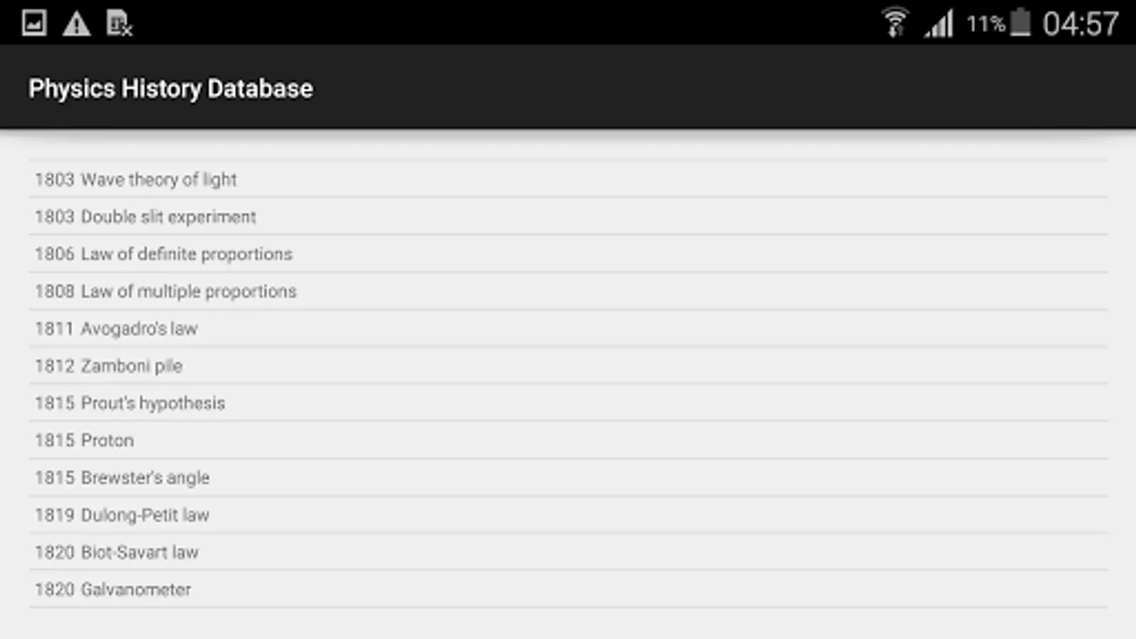After clicking entry, new window will appear with details about physics discovery or theory.