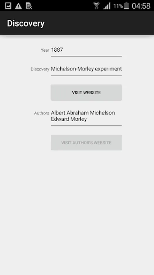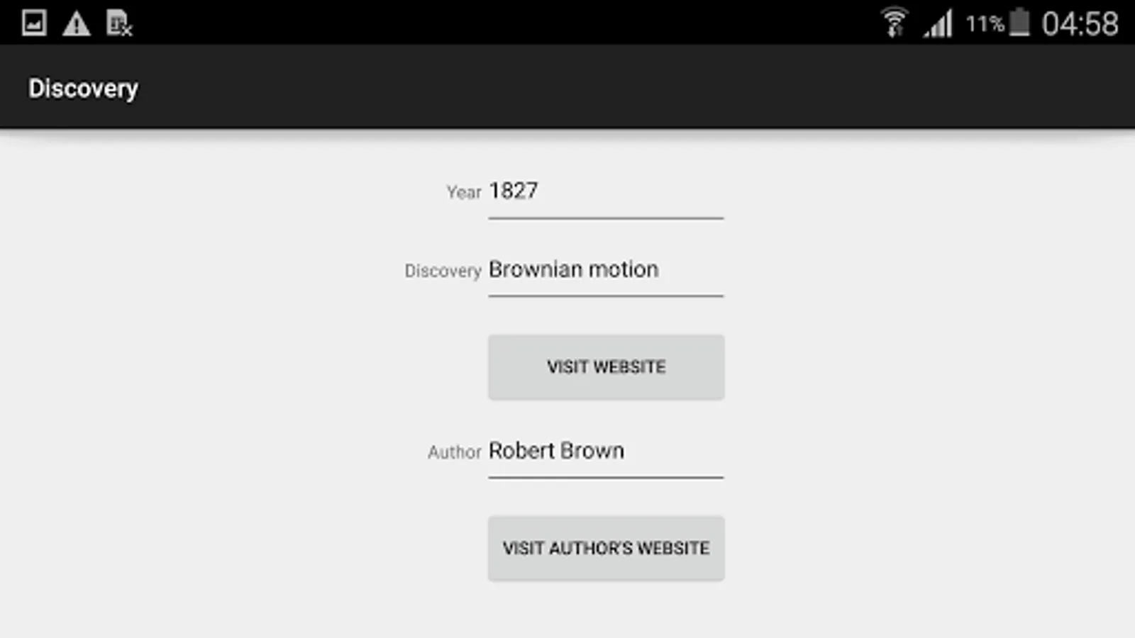 You can click buttons which will open Internet browser with Wikipedia page related to discovery or theory.