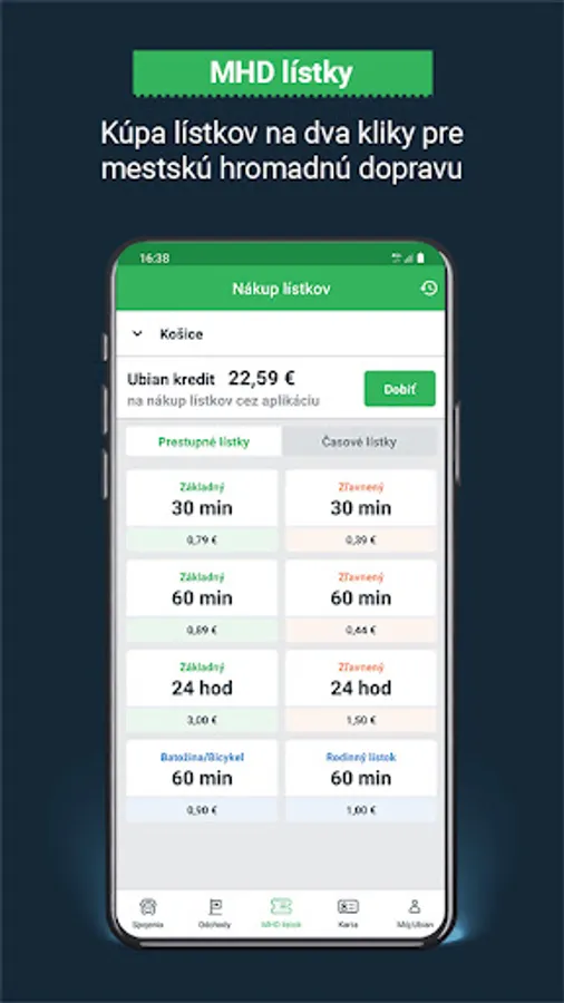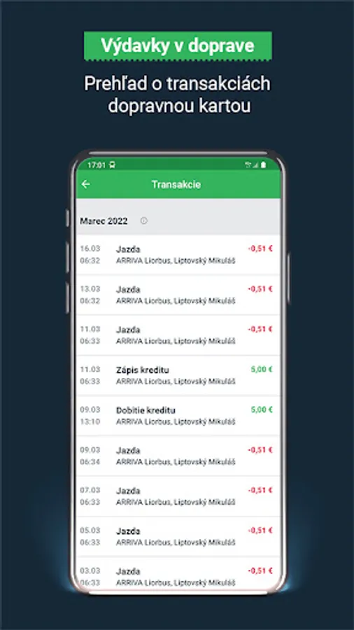 Ubian is used to buy pre-paid timed travel tickets or tram tickets, top up credit on a transport card or buy a new transport card. In the application, you will also see the transactions made with your transport card in public transport. You can currently buy the products of carriers in Ubian: Transport company Bratislava, Transport company Košice, Transport company Martin, Transport company Prešov, Transport company Považská Bystrica, SAD Žilina, SAD Trenčín, SAD Prievidza, SAD Dunajská Streda, SKAND Skalica, SAD Lučenec, eurobus, SAD Prešov, SAD Poprad, BUS Karpaty, ARRIVA Michalovce, ARRIVA Liorbus, ARRIVA Nové Zámky, ARRIVA Trnava, ARRIVA Nitra, ARRIVA Bratislava.