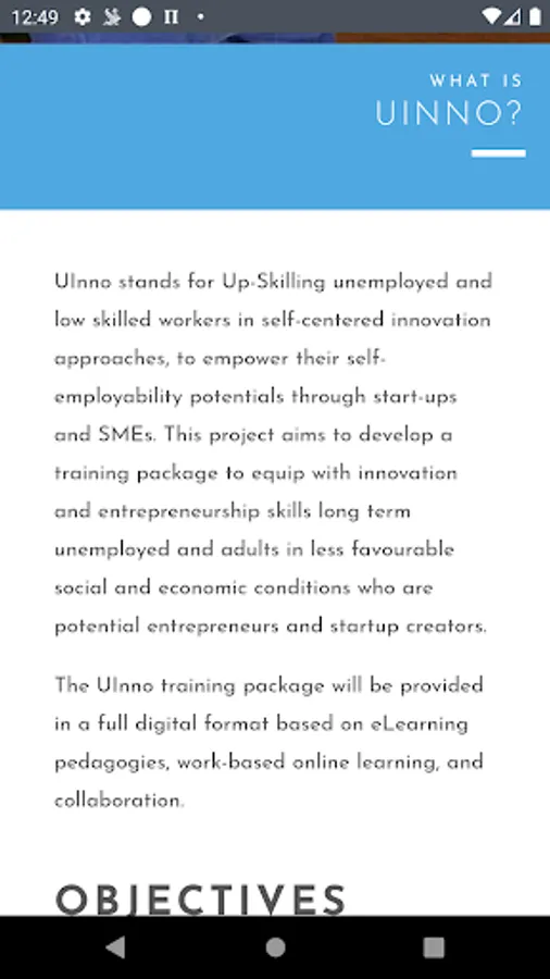 UInno stands for Up-Skilling unemployed and low skilled workers in self-centered innovation approaches, to empower their self-employability potentials through start-ups and SMEs. This project aims to develop a training package to equip with innovation and entrepreneurship skills long term unemployed and adults in less favourable social and economic conditions who are potential entrepreneurs and startup creators.