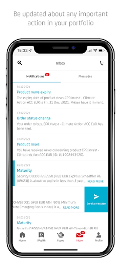 Get notified about latest events happening in your portfolio. Do not miss any product news from your banker or upcoming maturity of your products. Swipe the notification left and right to mark it as read/unread, or to follow up in the conversation with your banker.