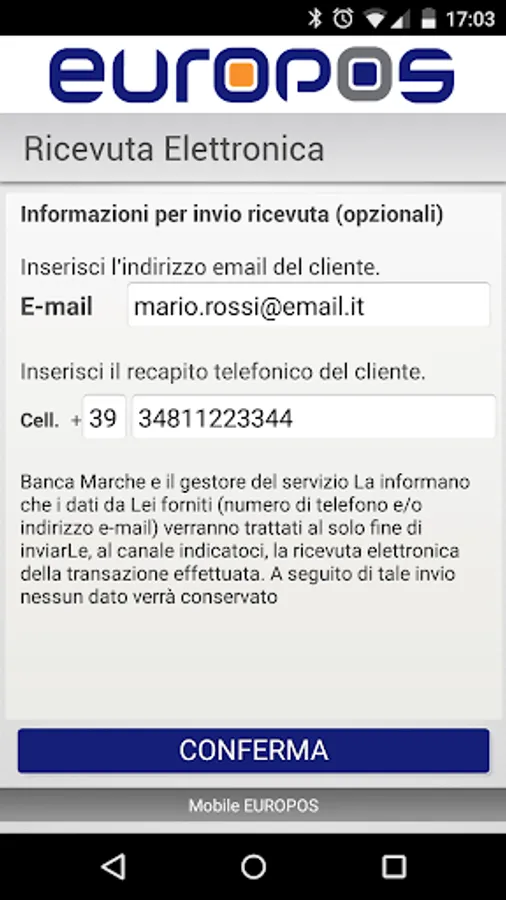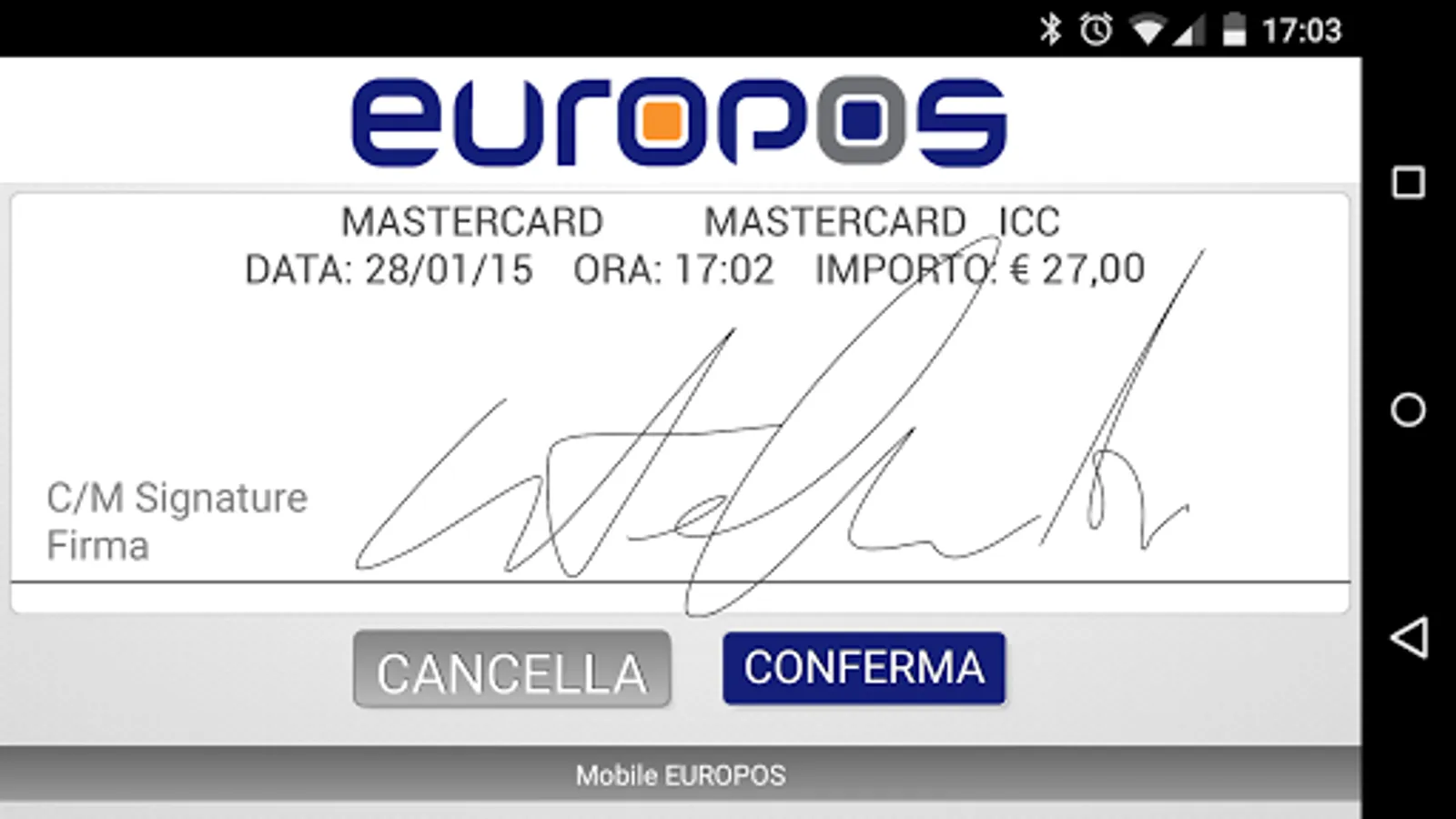 Mobile Europos was designed and developed in compliance with all safety standards set by Visa, Mastercard and Consorzio ATM, with the aim to make it easy, fast and convenient payment acceptance by your customers.