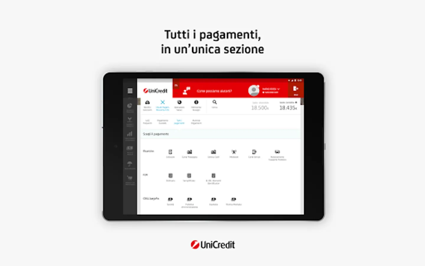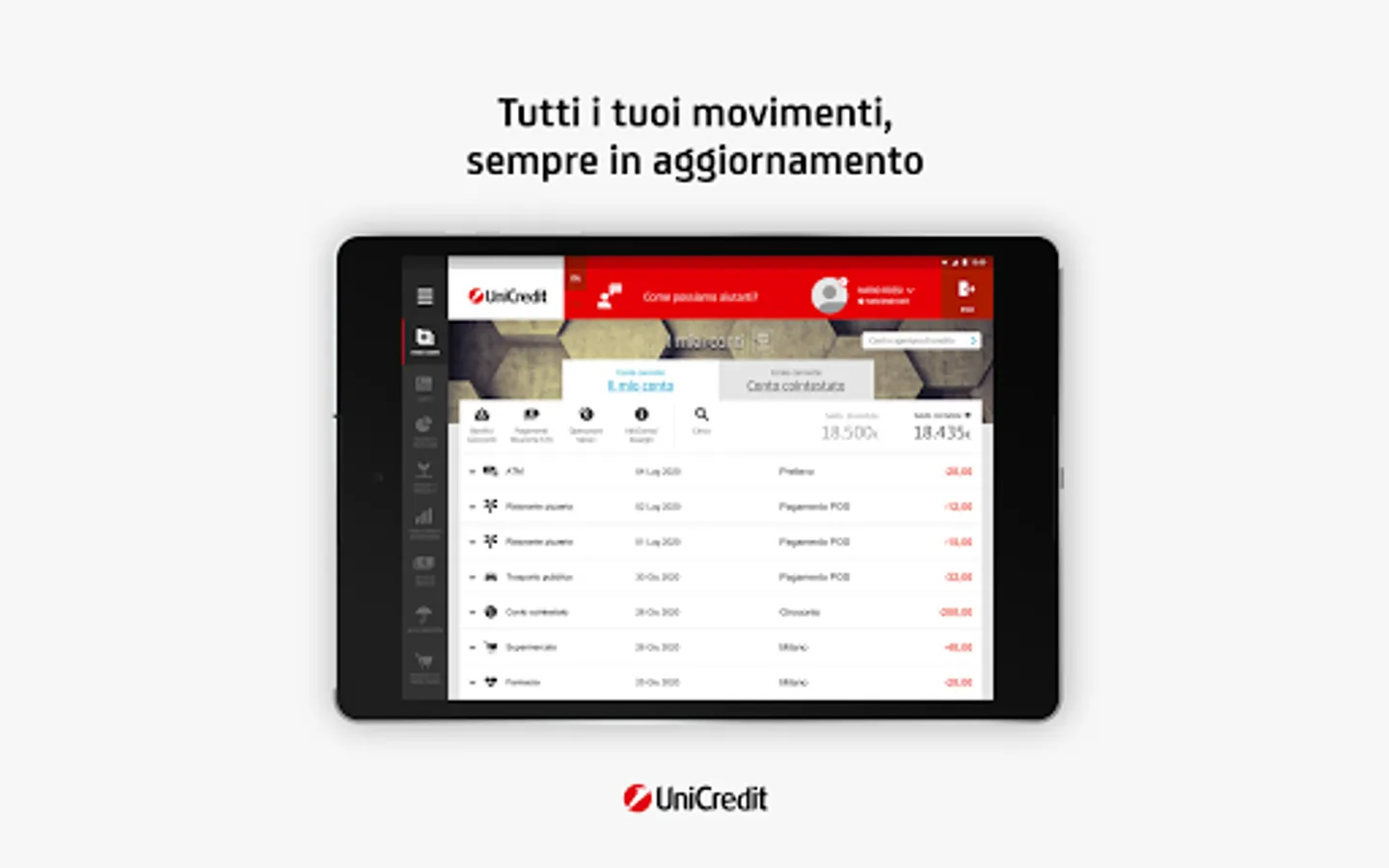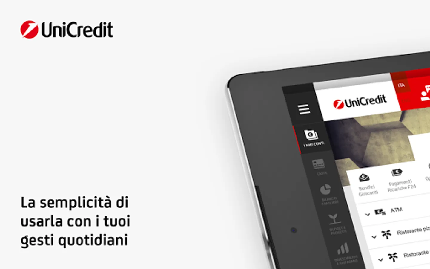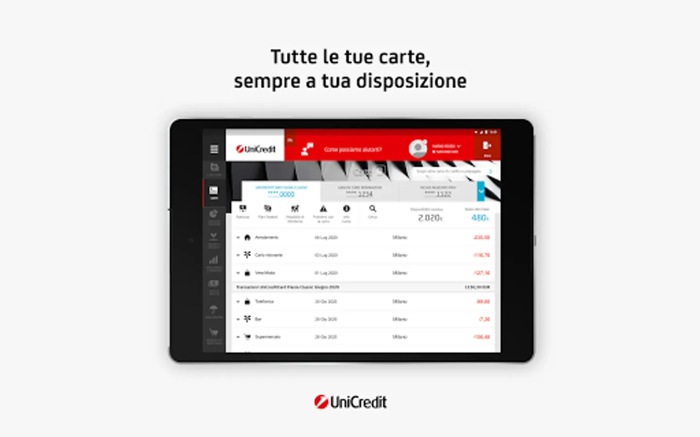 With the UniCredit Mobile Banking App for Tablets, you can operate easily, quickly and securely on UniCredit current accounts, Genius Cards, credit and prepaid cards and always be informed about your investments and savings.