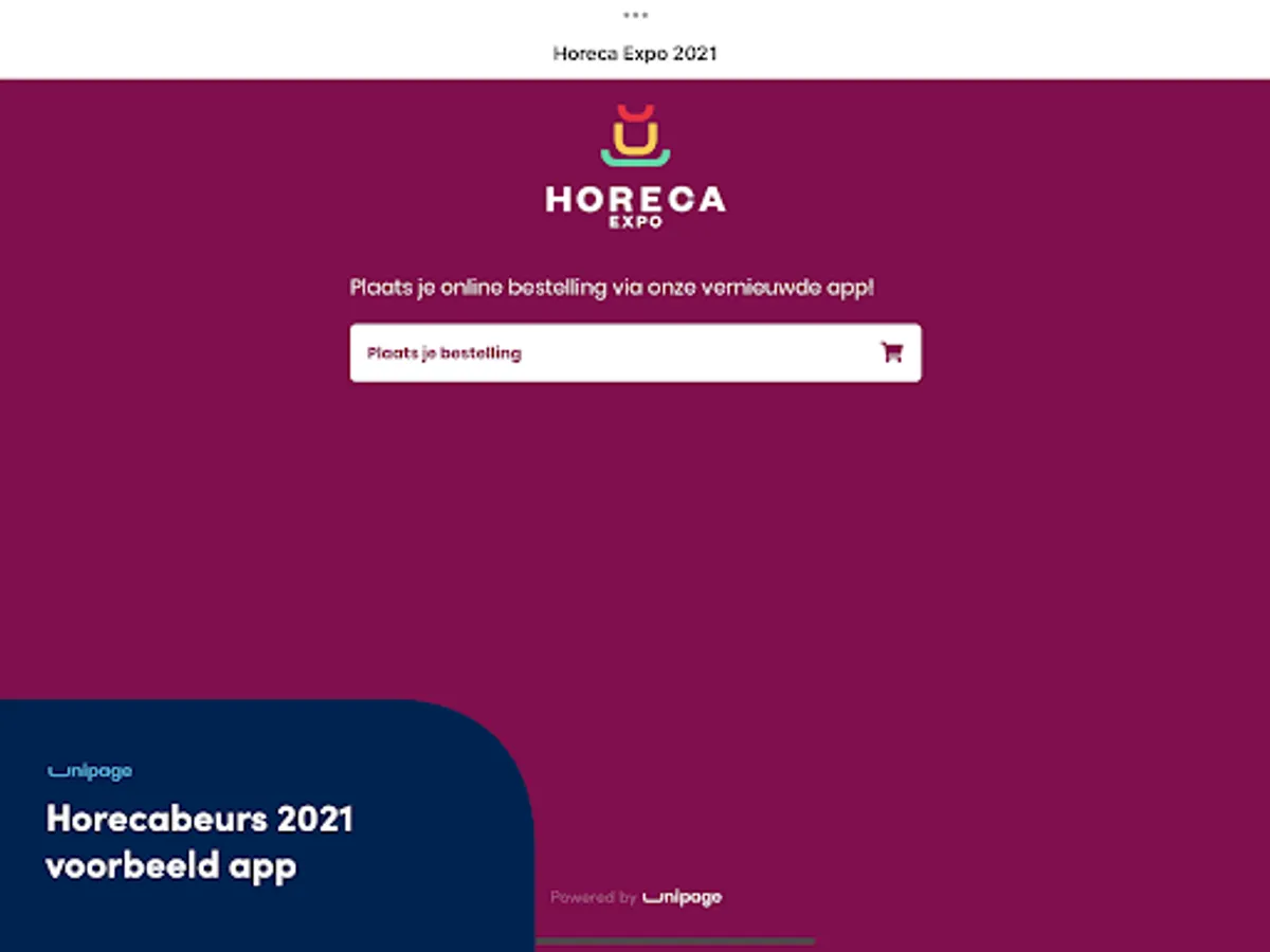 This is the demo application for Horeca Expo from Unipage. Feel free to order!