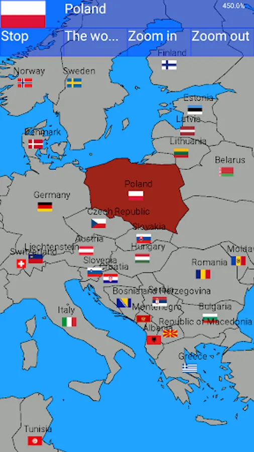 The app has an interactive world map that allows you to play the national anthem straight from the map (in the free version only from Europe).