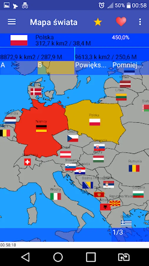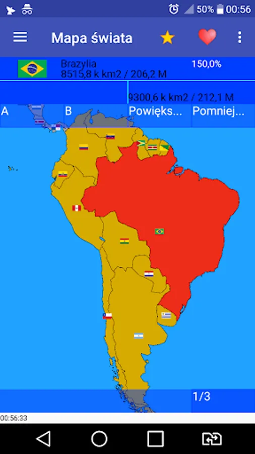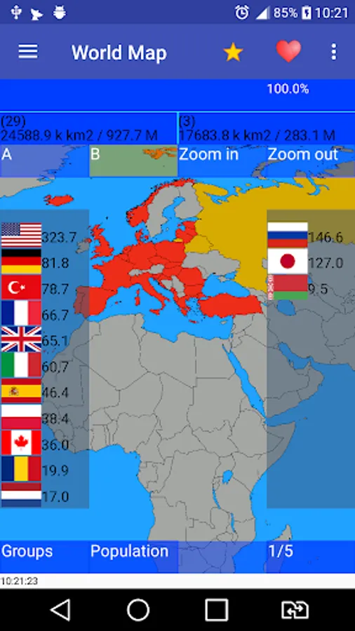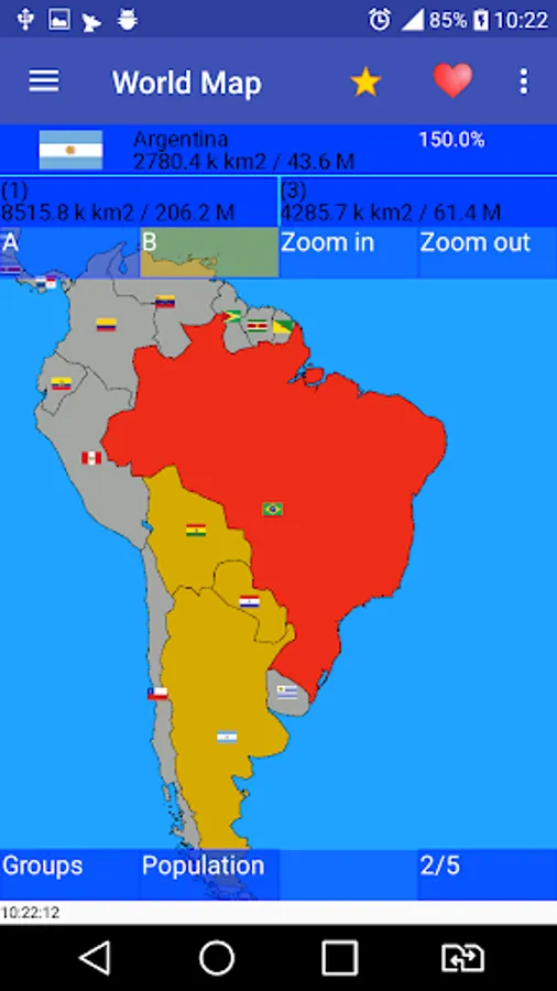 I present to you an application that includes an interactive map of the world. Each country has the data: surface area and population.