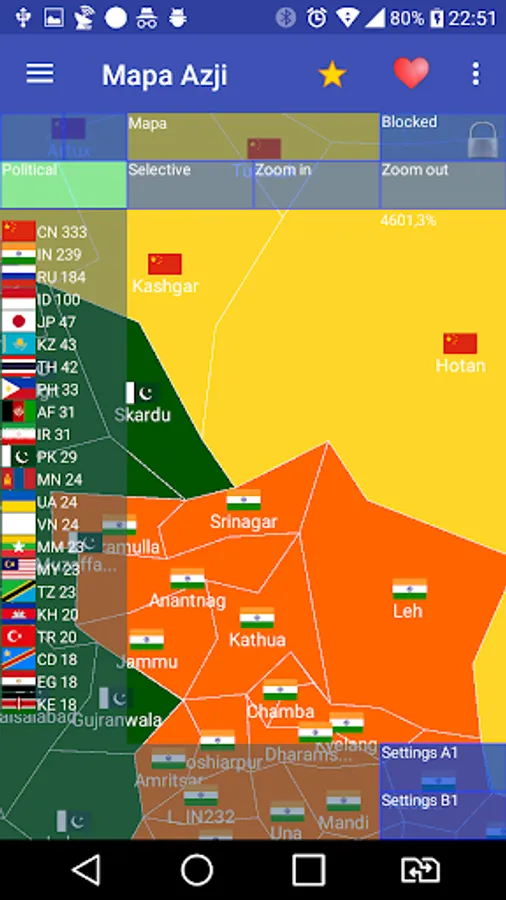 I present you with an application containing a map with almost 1700 provinces from Asia and parts of Africa and Europe with flags.