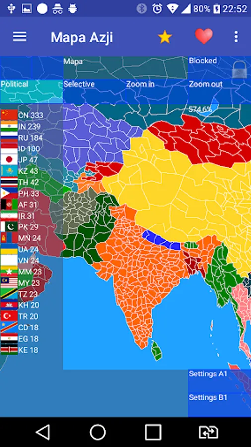 I present you with an application containing a map with almost 1700 provinces from Asia and parts of Africa and Europe with flags.