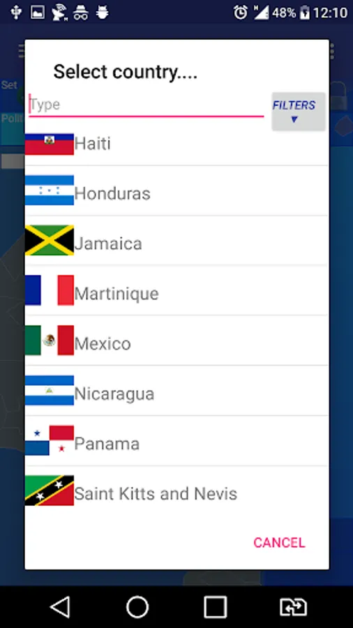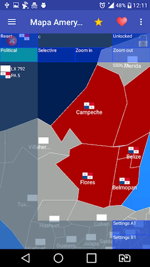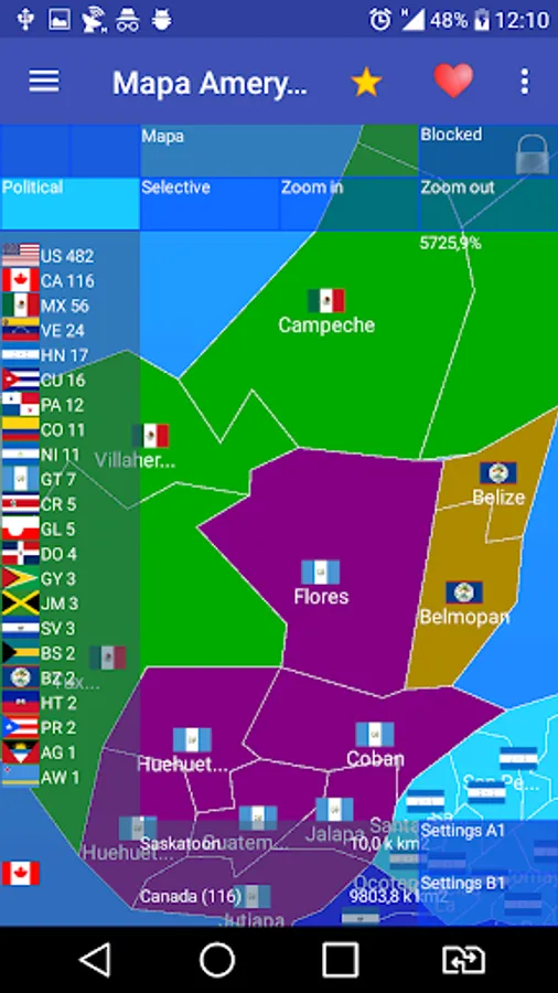I present you with an application containing a map with almost 800 provinces from 33 countries from North America and parts of South America with flags.