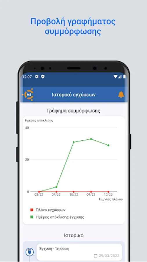 In addition, you will be able to enter the day of the infusion in the application's calendar and to keep notes/advices as well as to monitor your compliance with your treatment through a chart in order to inform your treated physician.