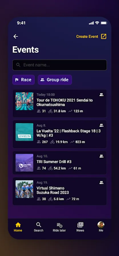 Start or interrupt your ride whenever you want, preview the map of the route you are riding, and view your ride stats