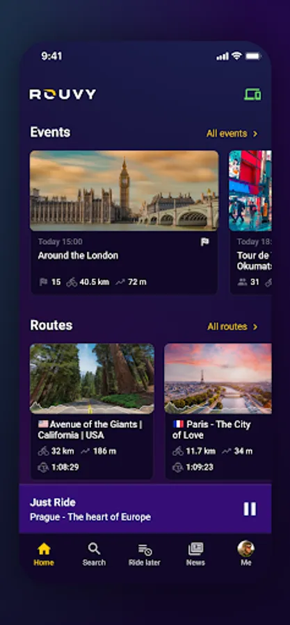 Pair it with the ROUVY app over your ROUVY account and use it as a controller while riding. Browse through thousands of kilometers of routes and numerous workouts and add them to your Ride Later list even if you are not at home or nearby your trainer.