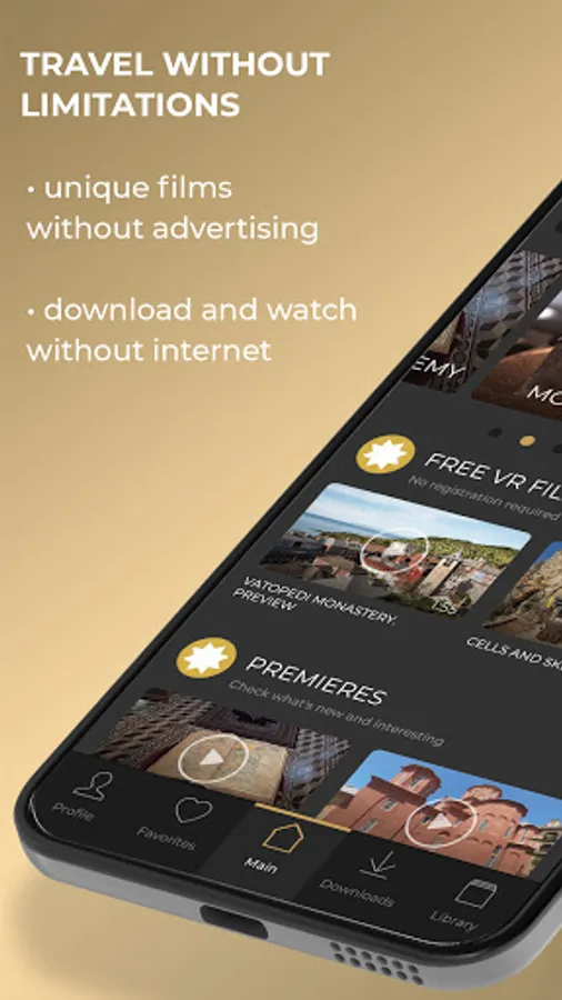 • Premium Subscription gives complete access to the library of VR films, as well as the ability to download VR films for offline viewing