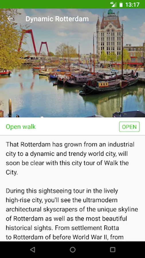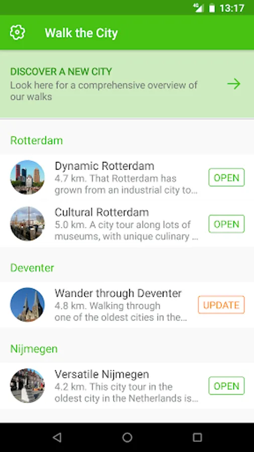 A city walk of Walk the City is your personal tour guide to discover a city. Download a walk in a city of your choice, select an entry point and you can start exploring.