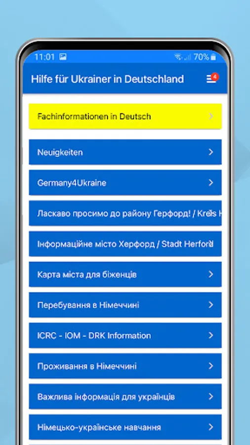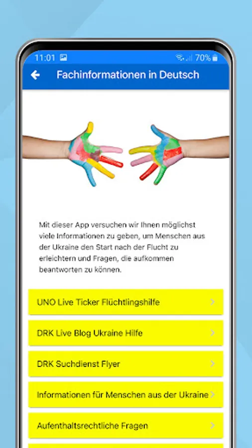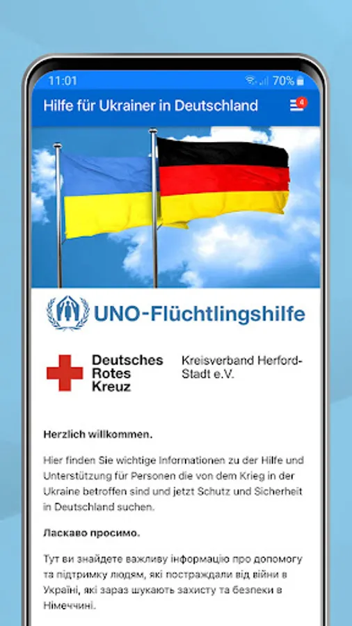 "welcome ua" is an app with targeted information for all people affected by the war in Ukraine who are now looking for protection and security in Germany.