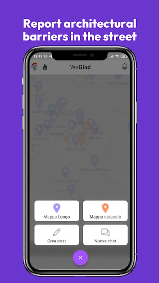 WeGlad is an interactive and social map that allows individuals with physical impairments to discover and report accessible places while being able to talk and help each other.