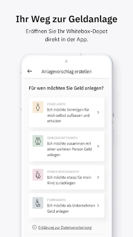 Not on Whitebox yet? Register in the app in just a few minutes and invest money flexibly and professionally with the triple test winner of Brokervergleich.de (2020, 2021 & 2022). Start building your wealth with Whitebox today!