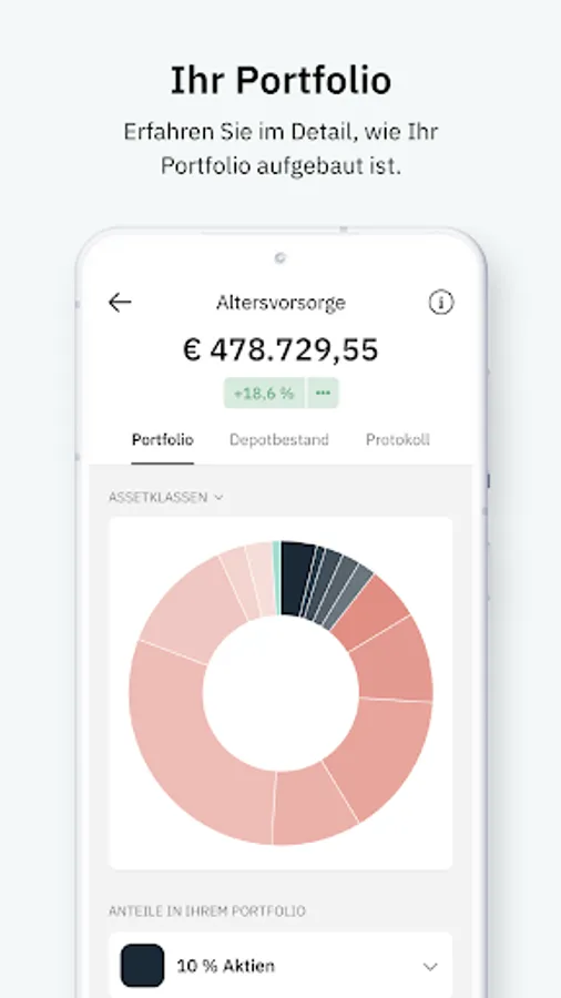 As a multi-award-winning digital asset management company based in Freiburg im Breisgau, we invest your money professionally and widely in ETFs, ETCs and some active funds. Our experienced service team of trained bankers will personally accompany you on your way to your financial future.