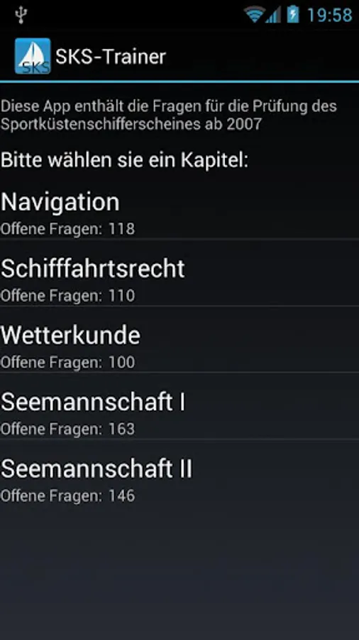 The "Sportküstenschifferschein" (SKS) is a German driving license for pleasure crafts in costal waters not exeeding 12 nautical miles.