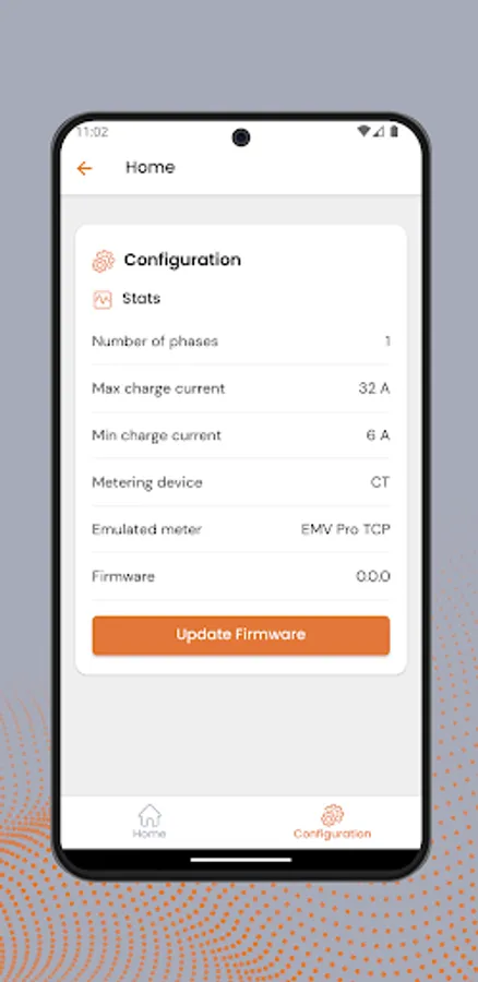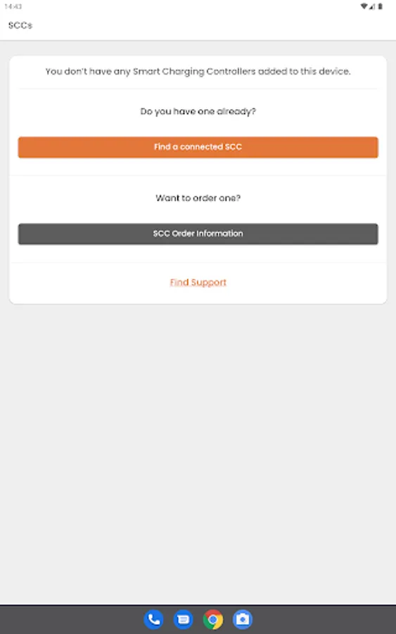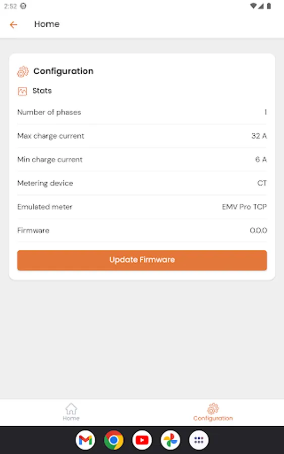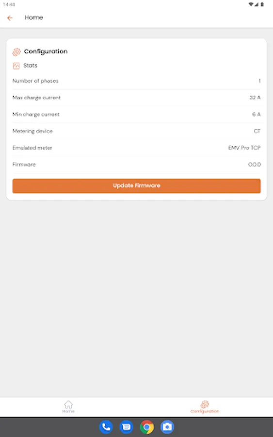 De configuratie-instellingen van de SCC kunnen via de app worden gelezen (niet geschreven) en er kan een commando worden gestuurd om de firmware bij te werken. Door dit commando te verzenden, neemt de SCC contact op met een updateserver om de nieuwste firmware te downloaden.