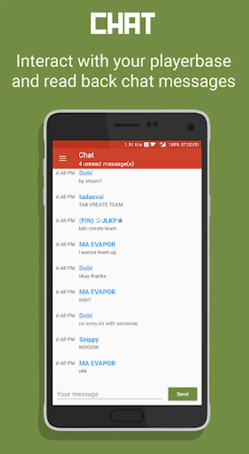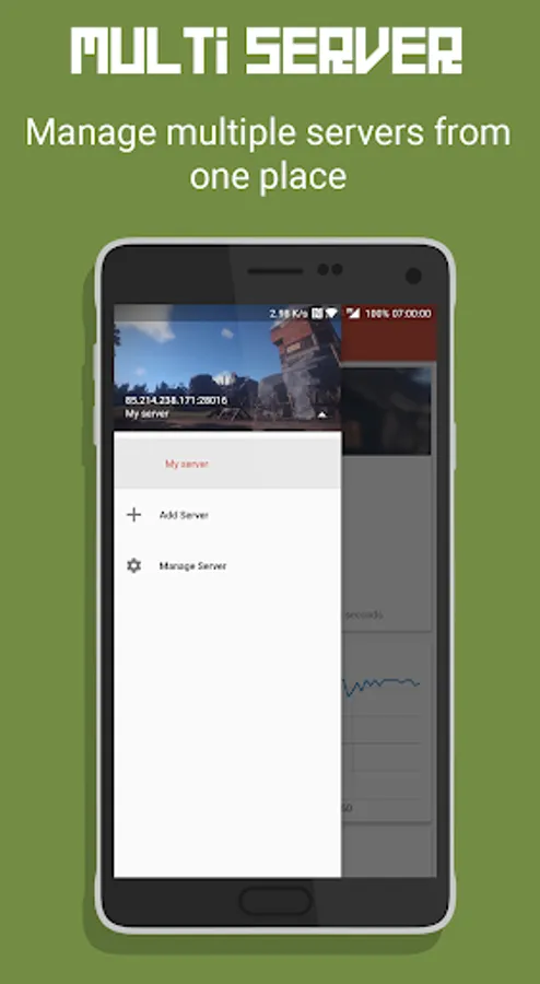 RustControl is an RCON administration app for Rust, a game by Facepunch Studios. It allows you to administrate your server from your smartphone.