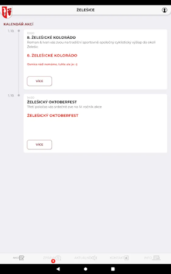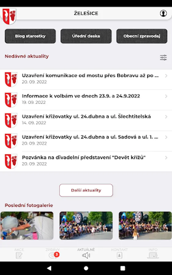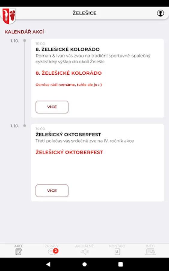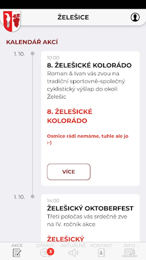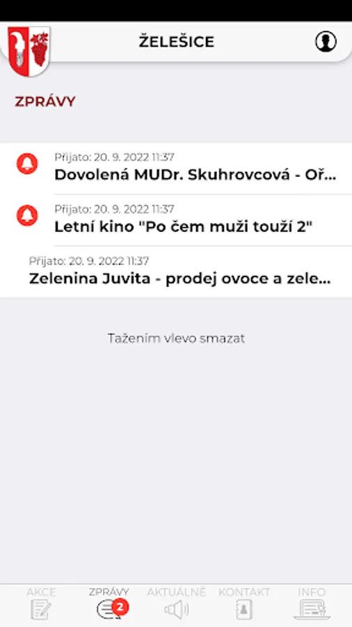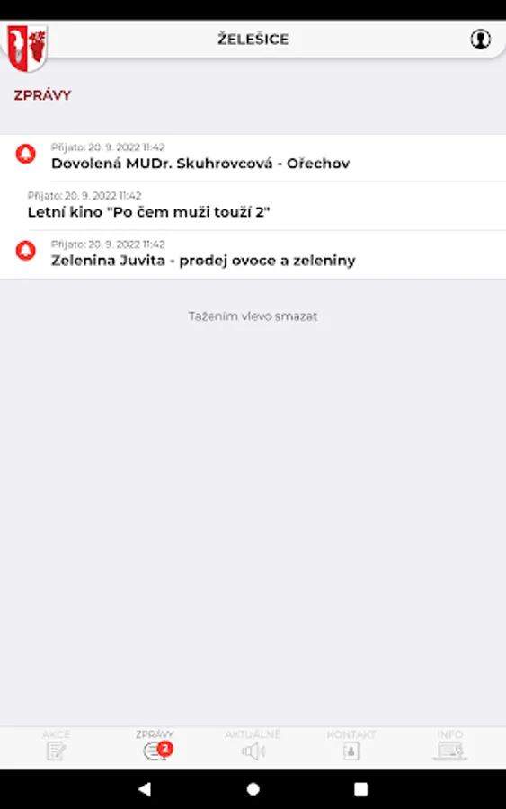 The application informs citizens and visitors about events in the village of Želešice in the South Moravian region.