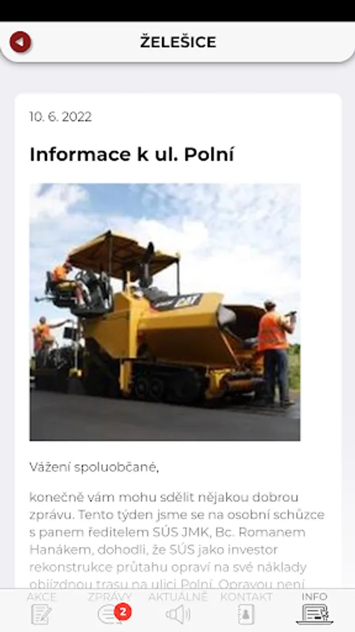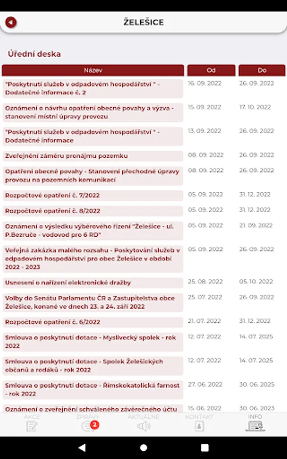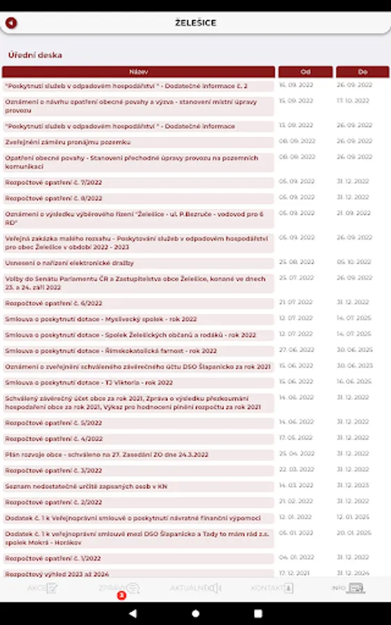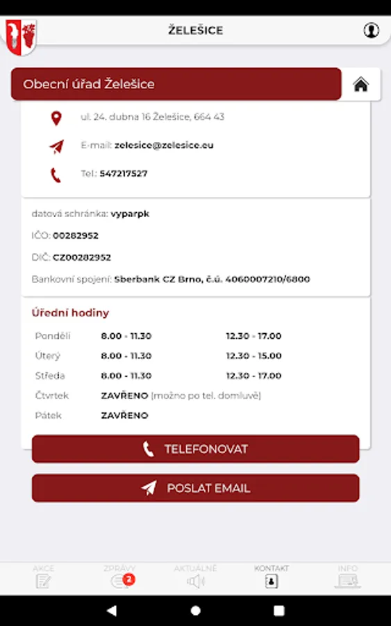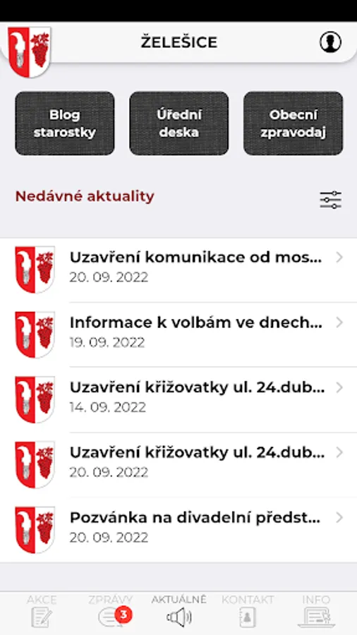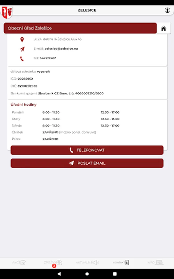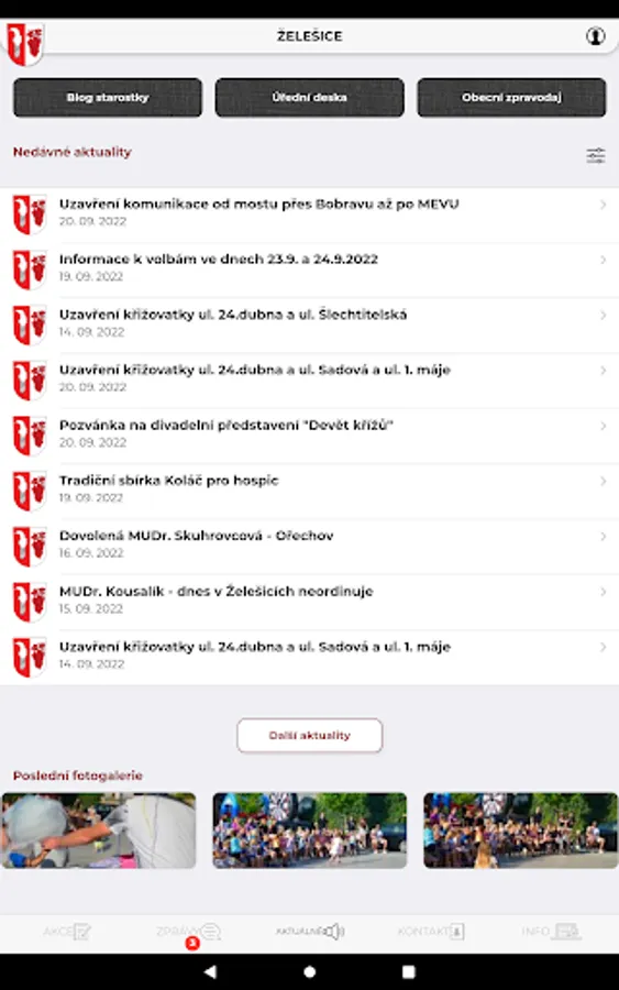 The application informs citizens and visitors about events in the village of Želešice in the South Moravian region.