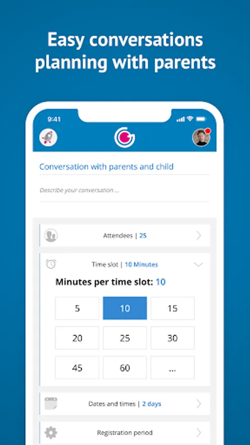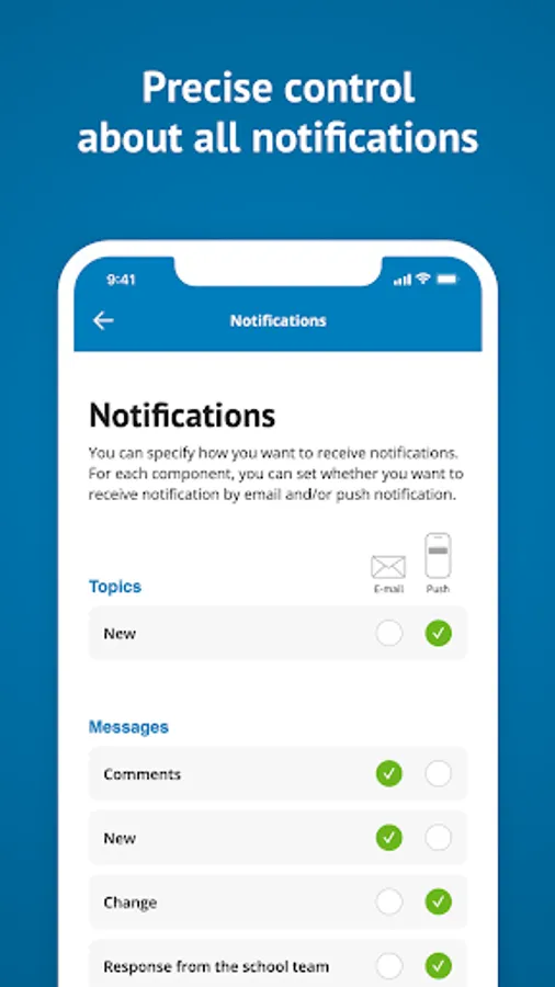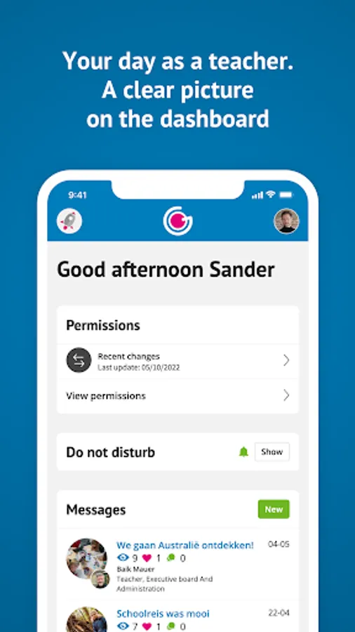 • Topics: Chat directly with parents. Send photos and files, safely and easily.