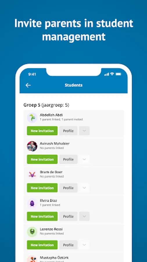 • See which parents are not yet linked to Ziber Kwieb and invite them.