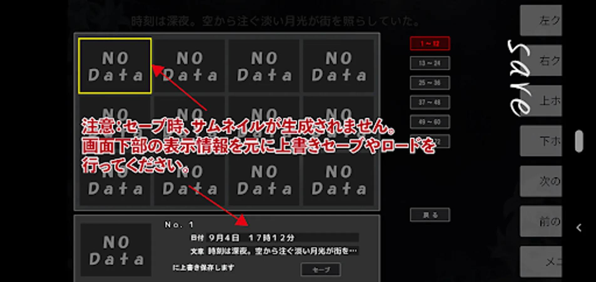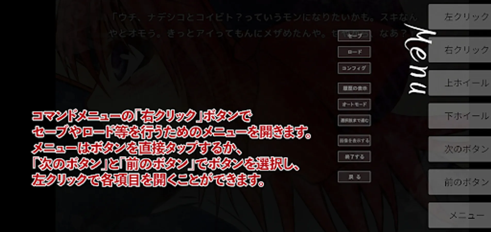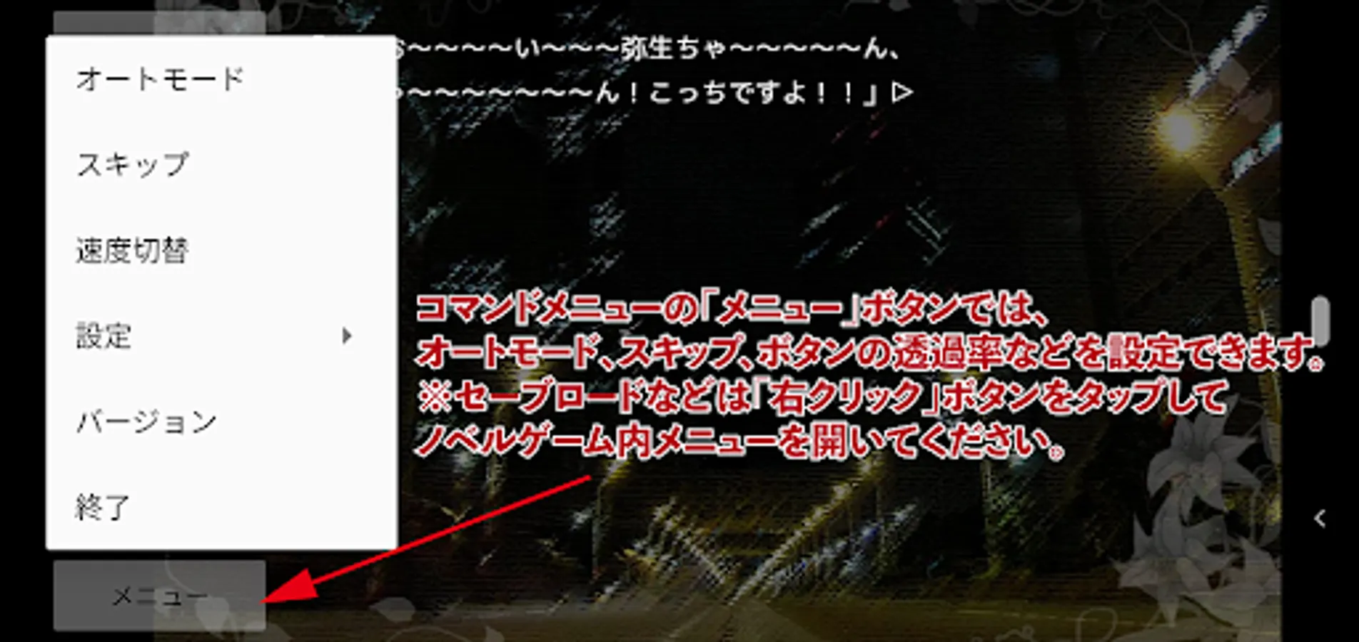 -Menu: You can set auto mode, skip, button transparency, etc.