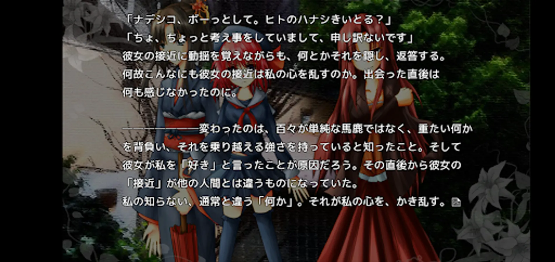 As soon as she meets, she confesses her love to Nadeshiko. While feeling annoyed by such contact, Nadeshiko feels more sparkling than murder.