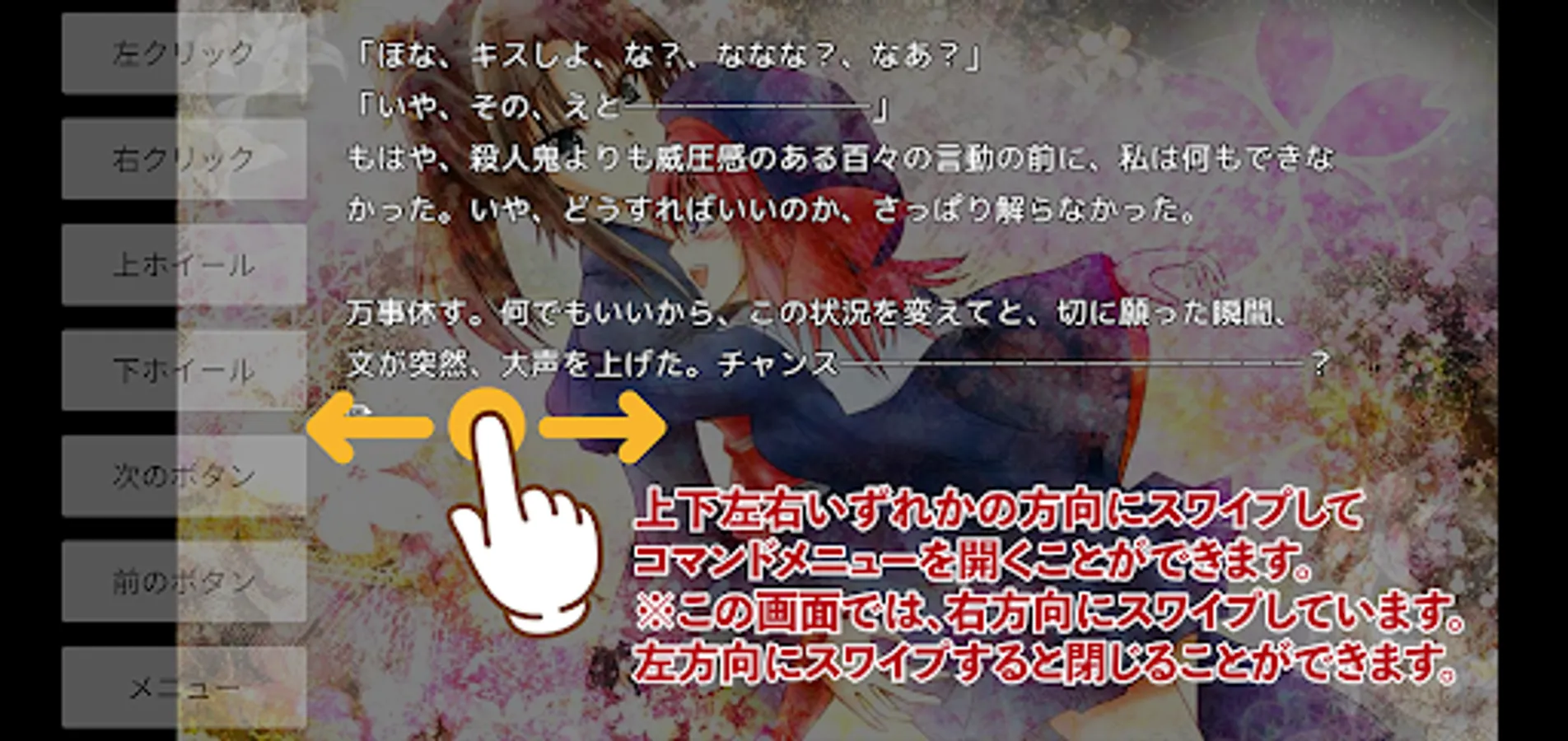 ・ When opening a menu, swipe in the direction opposite to the swipe direction to close the command menu.