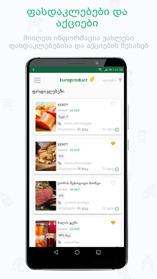 Corporate chain, EuroProduct, offers high quality product which is produced in Europe. We offer 10 products exclusively for you and it is up to you to decide which products to choose from this app. Create your own card, choose products, use chosen sale during one month and get bonus points. App also contains information about branches, sales, news, culinary advices and recipes. Subscribe to your favorite topic(s)(sale, news, culinary advice, recipe) and receive notifications instantly. EuroProduct – high quality, trusted and available to all!