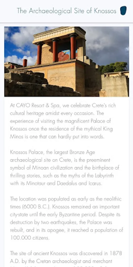 Get a glimpse of the accommodation's rooms, villas, suites, and opulent facilities. Check the latest news and events and receive personalized offers. Book your Spa therapies or reserve a seat in your preferred restaurant. Activities and destinations worth exploring are always at your fingertips. Manage your account, check your invoice or access our expert front Office staff at any time. While in the resort, use the application to familiarize yourself with Cayo's exclusive services and facilities.