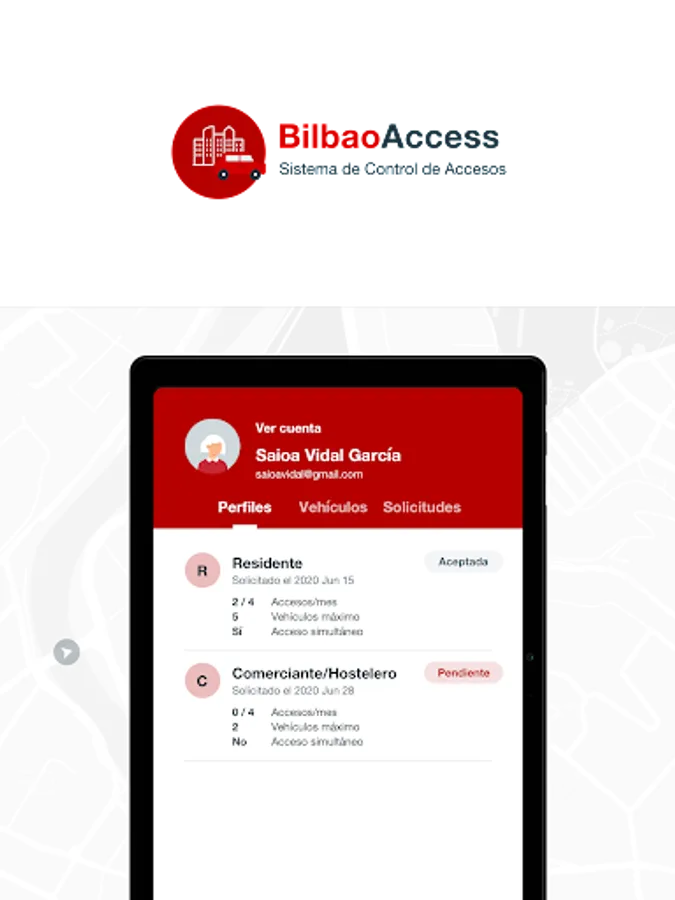 The objective of this application is to facilitate the management of authorizations for users to access pedestrian preference zones in the city of Bilbao with their vehicles. The application offers several functionalities for the control of the transits made and the authorizations, in order to comply with the Municipal Ordinance.