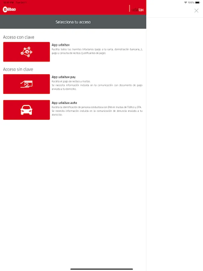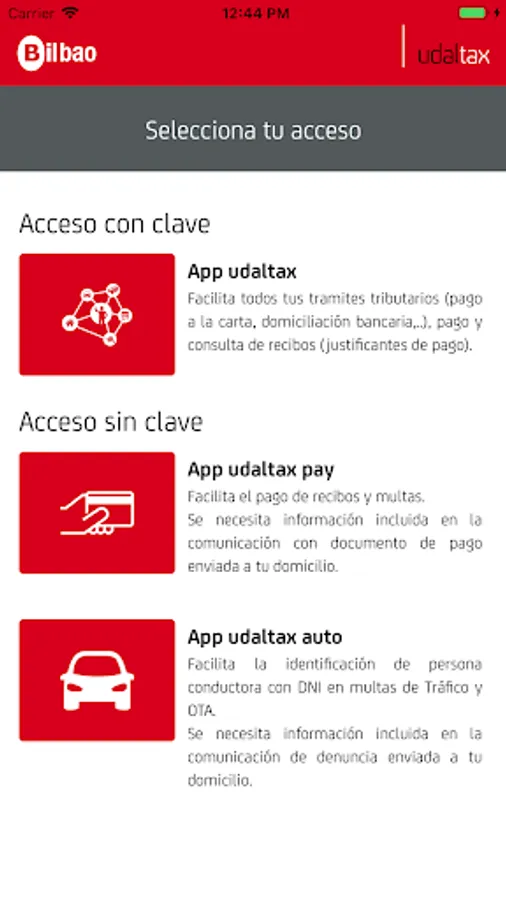 udaltax is the app of the Bilbao City Council that facilitates the consultation of your paid and pending receipts and without the need for an access code, the payment of receipts and fines by credit card or Bizum through the udaltax pay version and the identification of the driver through its version udaltax auto.