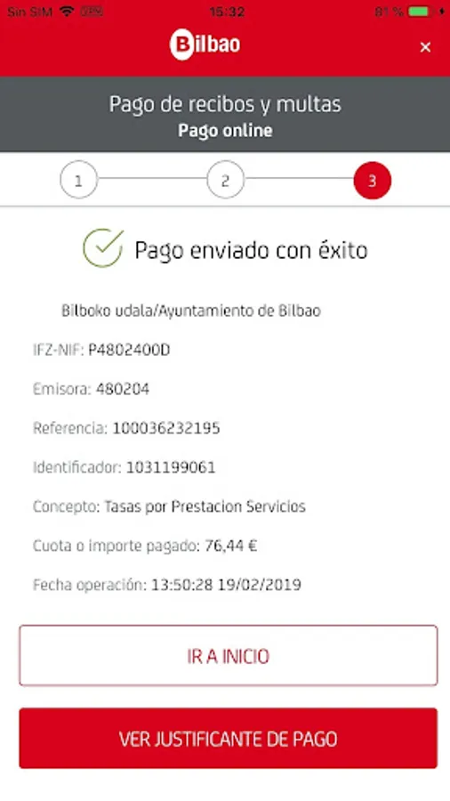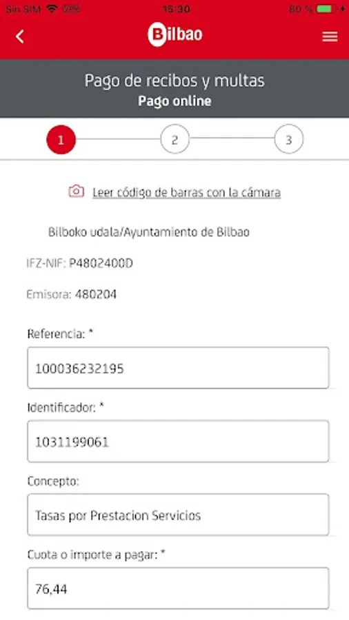 In the udaltax pay version, the application has a barcode reader to facilitate and simplify the municipal bill payment process. Read the barcode with your mobile camera or manually enter the required data that you will find in the communication with the payment document sent to your address and start the payment by credit card or Bizum. You will receive an SMS from your bank on the mobile associated with the payment card to verify the payment order and at that time you will have proof of payment for the operation.