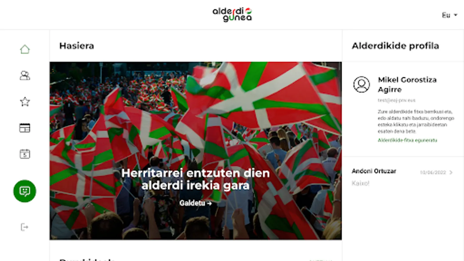 AlderdiGunea is the new way of connecting and conversing that we at the EBB make available to all alderdikides with the aim of making a more open and participatory Party to build a better and freer Euskadi.