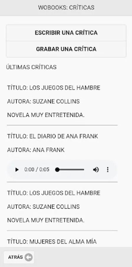La finalidad de esta app es conocer el trabajo de las diferentes mujeres en la literatura. Tras registrarte, tendrás acceso a un catálogo de libros escritos por mujeres, a un test donde comprobarás cuánto sabes sobre diferentes escritoras y también existe un apartado donde leer críticas sobre libros y aportar tu opinión sobre las obras de estas escritoras.