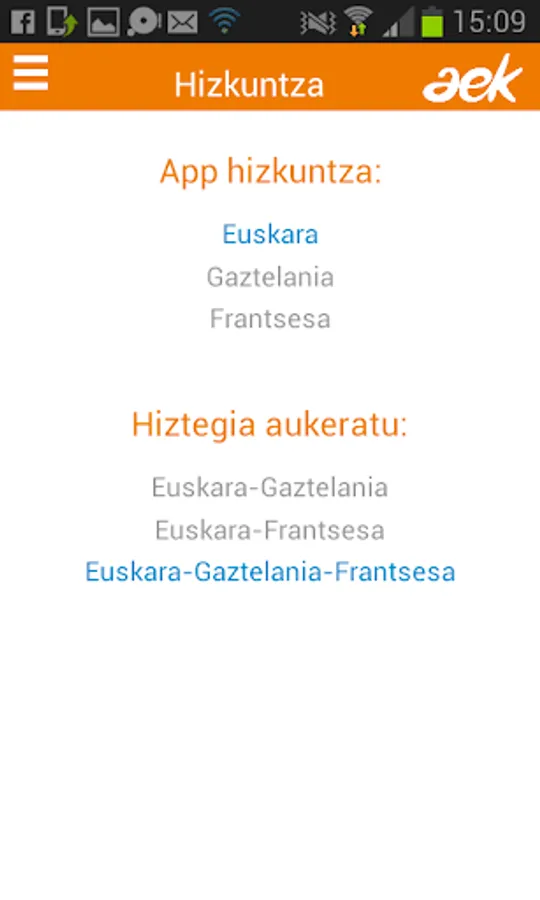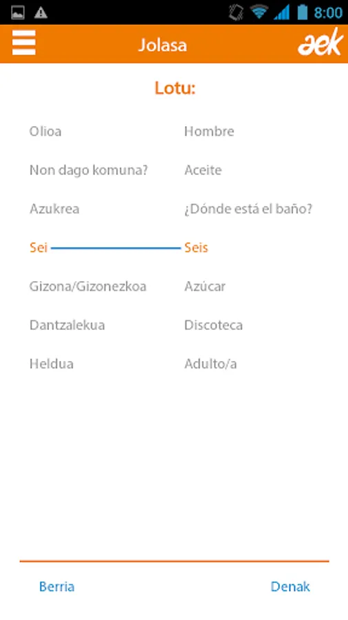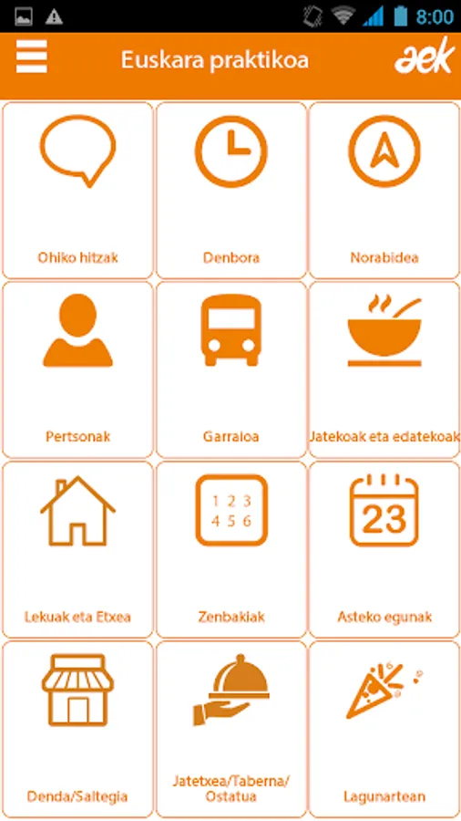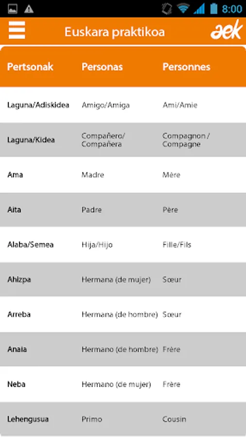 AEK application. Here you will find words and expressions to manage in the most basic conversations. A new feature this year is the game we've added to use the dictionary.