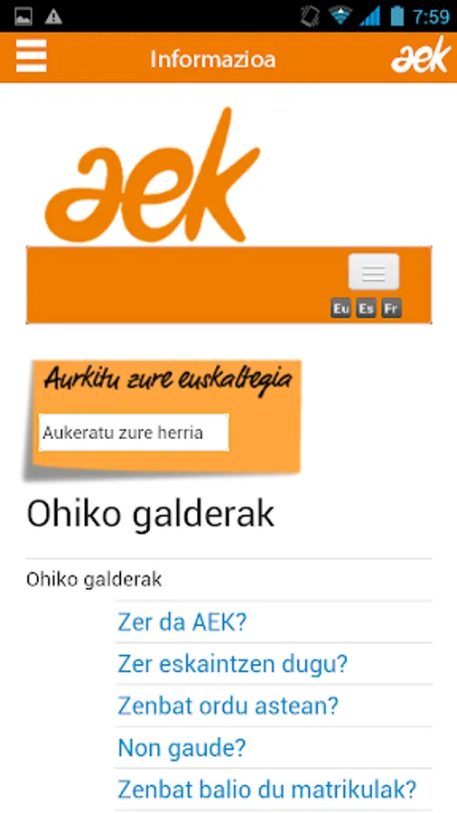 On the other hand, you have the chance to get information about the nearest euskaltegis and, if you wish, you can contact them. Also, you'll meet the same safety characteristics of the supply of euskaltegis of AEK.