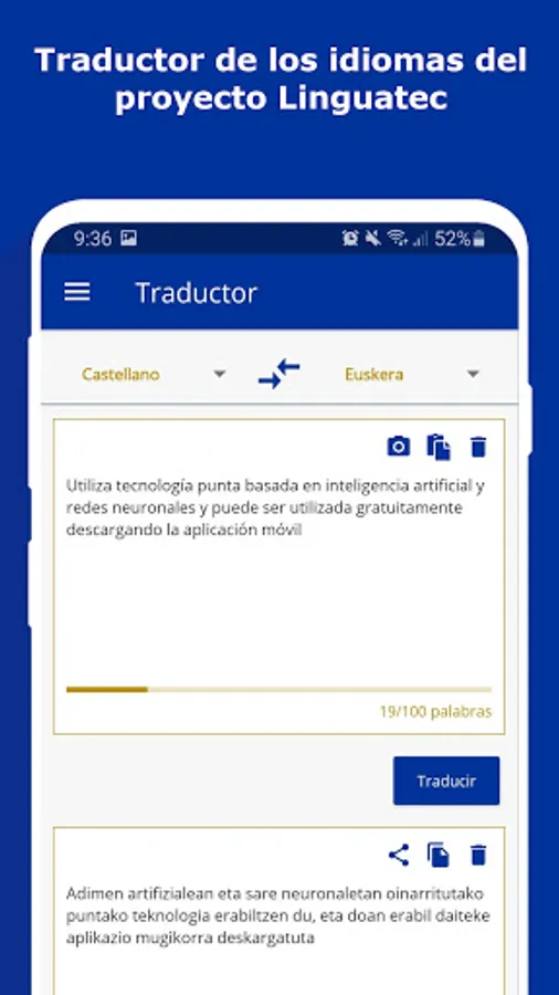 The European project EFA 227/16 / LINGUATEC "Development of cross-border cooperation and knowledge transfer in language technologies" aims to develop, demonstrate and disseminate new innovative linguistic resources, tools and applications that improve the level of digitization of Aragonese , from Basque and Occitan. The project has enabled technological cooperation between languages to develop new linguistic resources and tools, as well as new online applications to facilitate the use of Basque, Occitan and Aragonese, and multilingual access to content by end users. This application is one of the solutions developed within the project.
