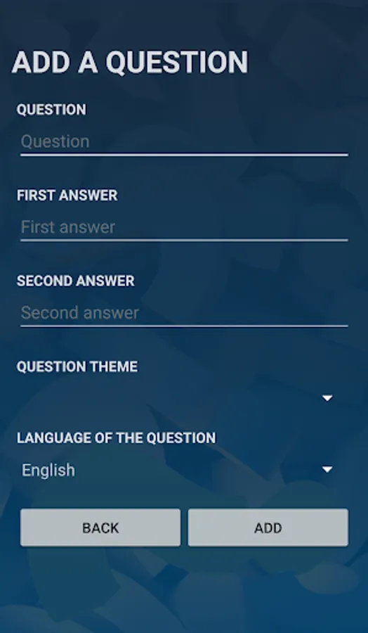 This app has also been developed to let users collaborate with us. Thus, you will be able to add new WYR questions that you want other people to answer.