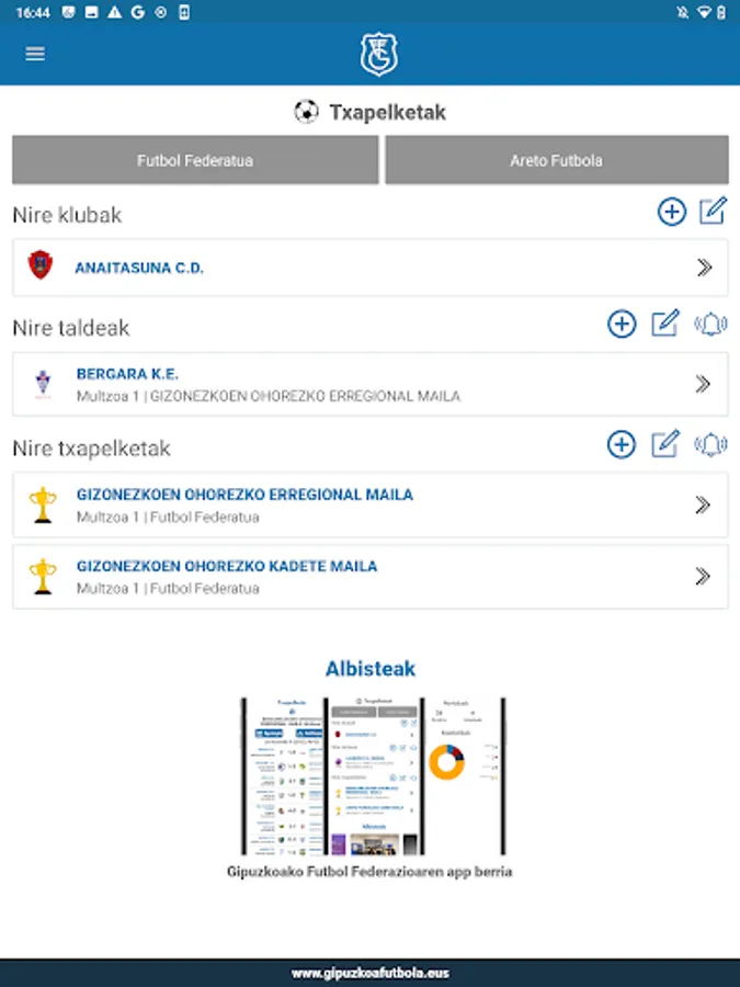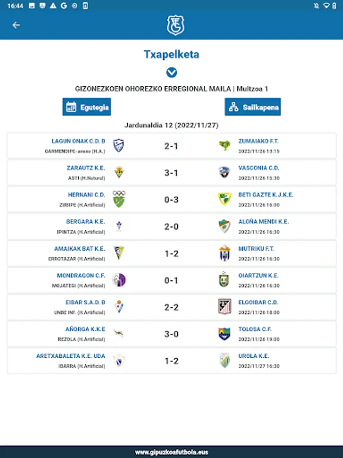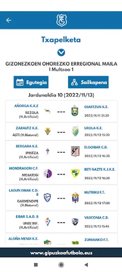 The timetables, calendars, results and classifications of all the federation's football and futsal tournaments can be consulted. In addition, users can set up their favorite clubs, competitions and teams to receive real-time notifications of current results and fixtures.