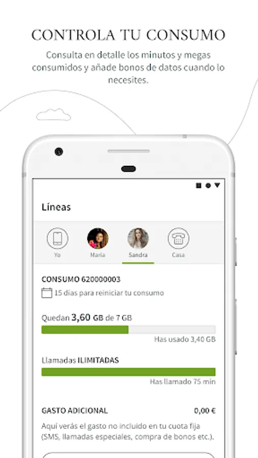 - Your consumption: control your calls, the data consumed, the messages sent and even hire an additional bonus if you need it. Here you will have all the information that interests you about your line. Word.