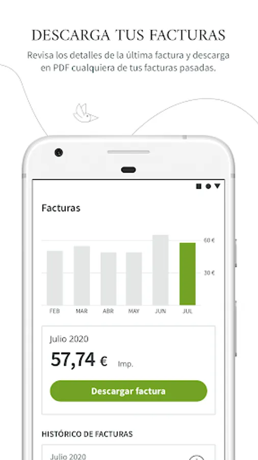 - Your invoices: take a look whenever you want at all your invoices from the last few months and download them in PDF.