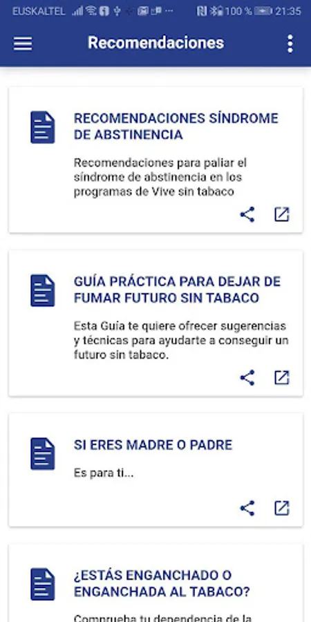 Record the cigarettes that you have smoked and that you have avoided daily and which have been the triggers that have led you to do so (hunger, stress, etc.). The application will offer you information on the money saved and life gained since you left it, as well as motivation tips that will help you in the process.